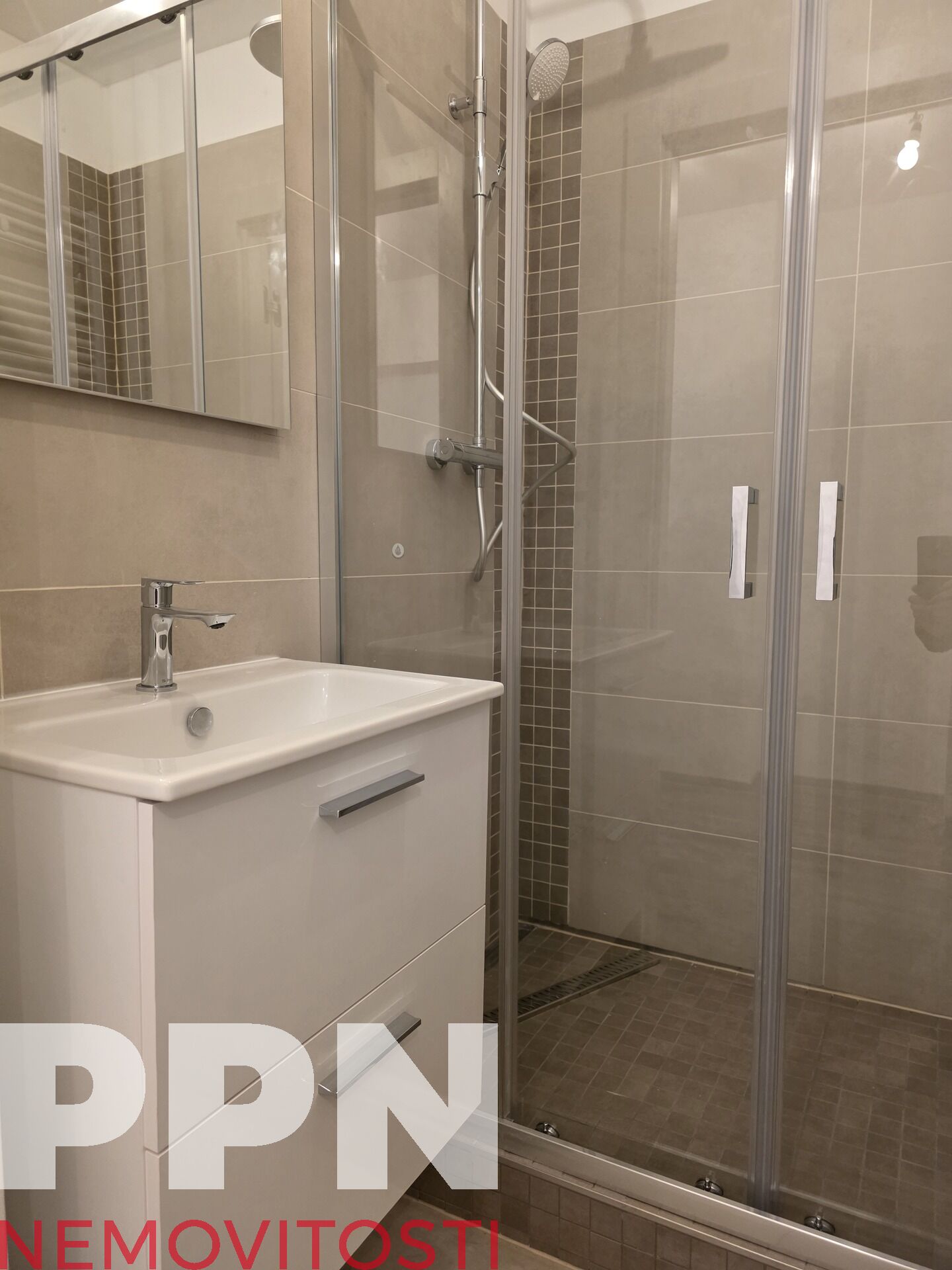 Byt prošel kompletní modernizací, nové elektrické rozvody, podlahy, omítky, zděné jádro, koupelna se sprchovým koutem, toaleta Grohe a
